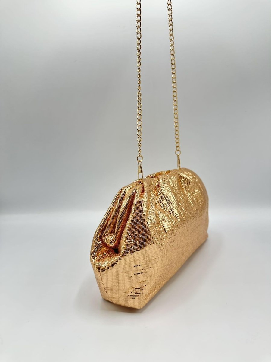 Maak een glamoureus statement met deze schitterende clutch. Het sprankelende ontwerp met metallic glans zorgt ervoor dat dit tasje dé blikvanger is bij elke gelegenheid. Perfect voor feestjes, bruiloften of een avondje uit.