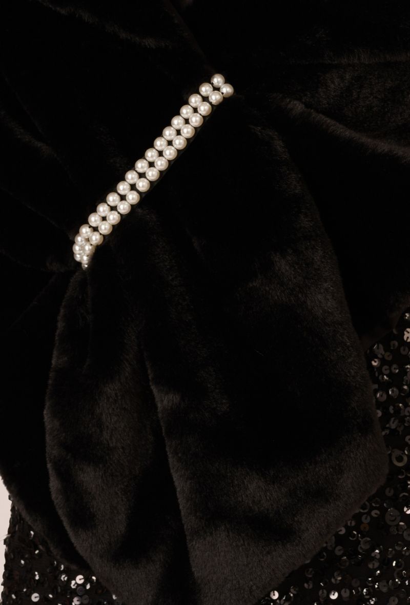 De stola sluit met een verfijnde clip die versierd is met parels, wat een subtiele, klassieke touch geeft. Dit stijlvolle accessoire combineert functionaliteit met glamour en zorgt ervoor dat je er altijd verzorgd en modieus uitziet.