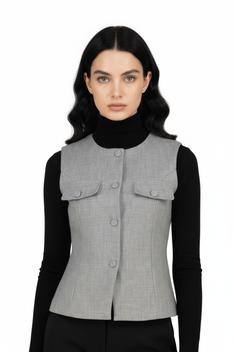 Draag het Cartagena gilet op een blouse of top voor een elegante office look, of combineer het met een bijpassende pantalon voor een compleet en sophisticated ensemble.