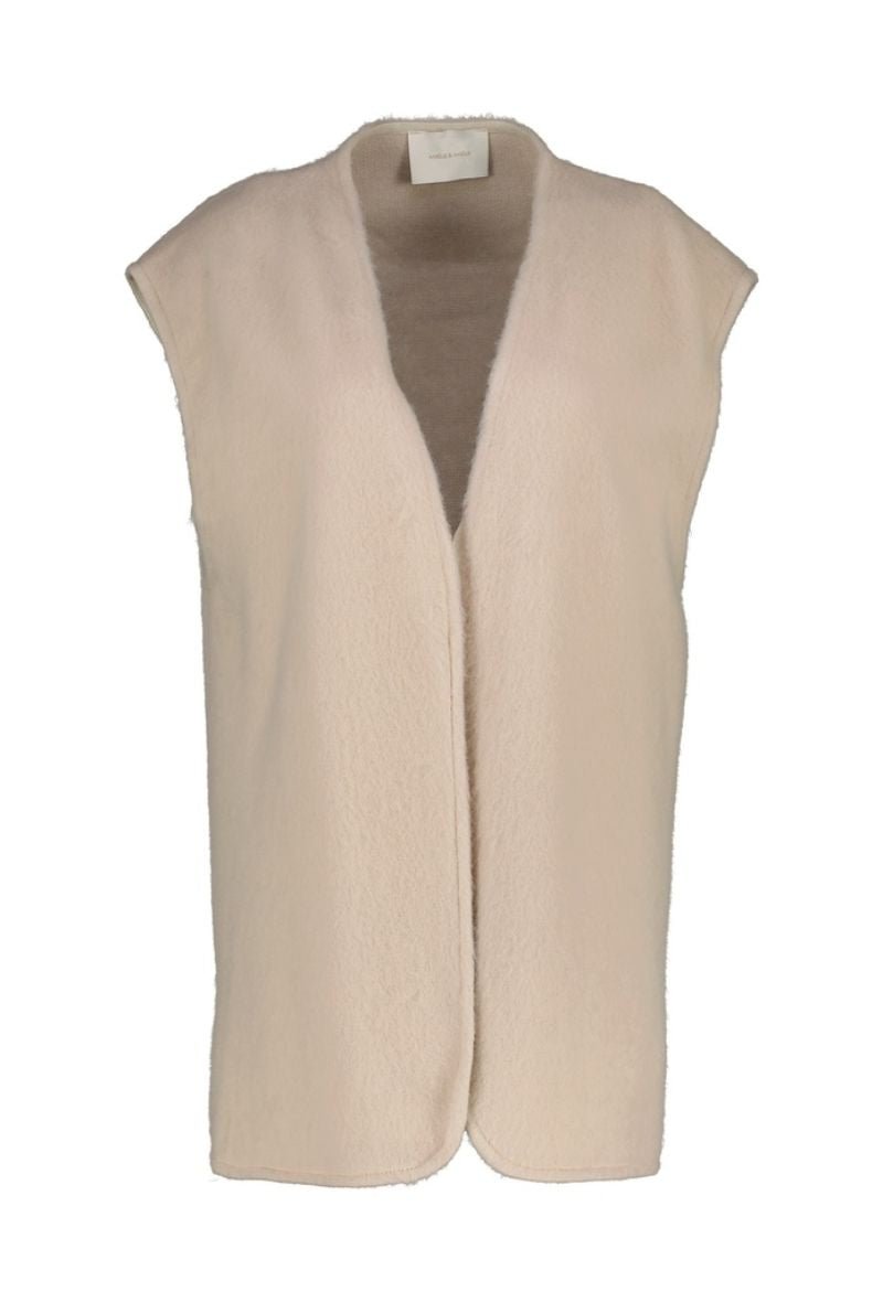 Het Dacca gilet van Amélie & Amélie is een veelzijdig en stijlvol item dat je moeiteloos over iedere outfit draagt. Met zijn rechte, openvallende model en zachte textuur voegt dit gilet direct een vleugje elegantie en warmte toe.