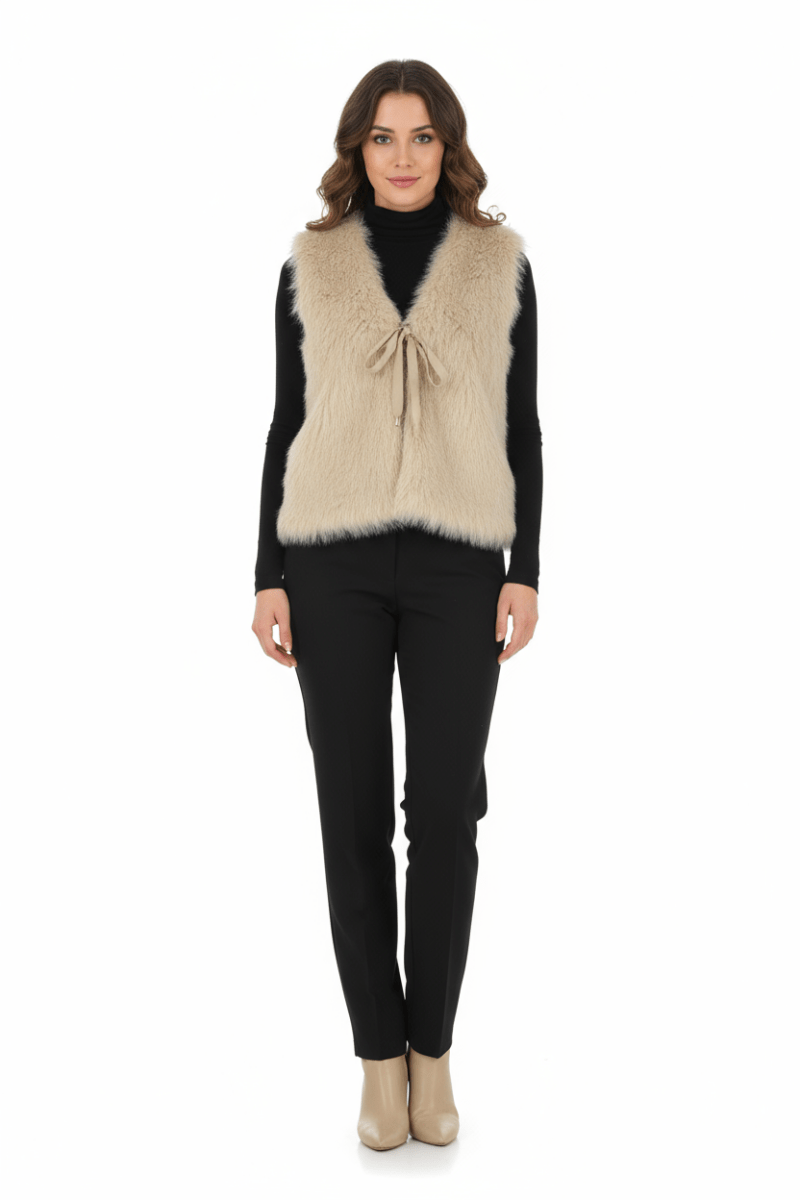 Deze stijlvolle faux fur gilet van Amelie & Amelie is een absolute musthave voor een chique én cozy look. De zachte, fluffy structuur geeft iedere outfit een luxueuze uitstraling, terwijl het korte model met striksluiting aan de voorkant zorgt voor een vrouwelijke en speelse touch.