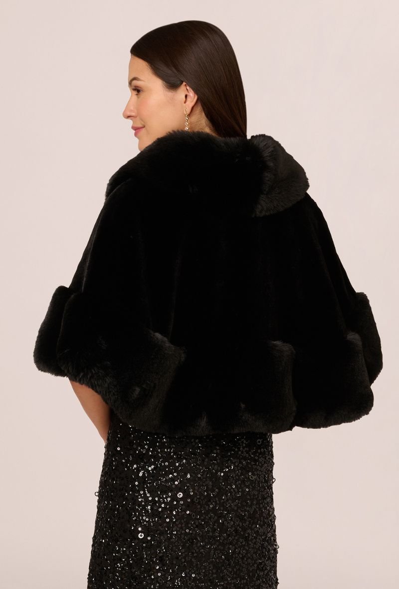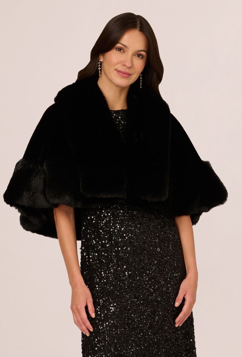 Deze elegante zwarte faux fur cape is een tijdloze toevoeging aan je garderobe. Gemaakt van luxe imitatiebont, is de cape voorzien van zachte nepbontdetails langs de mouwtjes en hals, wat een stijlvolle en warme uitstraling creëert. Perfect om over een avondjurk te dragen voor een verfijnde look bij formele gelegenheden.