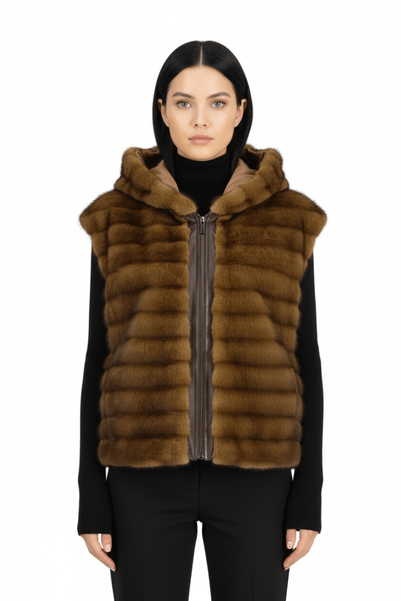De Helia bodywarmer van Amélie & Amélie is een luxueus en eigentijds gilet dat warmte en stijl perfect combineert. Dit mouwloze gilet met capuchon is uitgevoerd in een rijke chocoladebruine tint en heeft een zachte, faux fur afwerking die een elegante en warme uitstraling geeft.