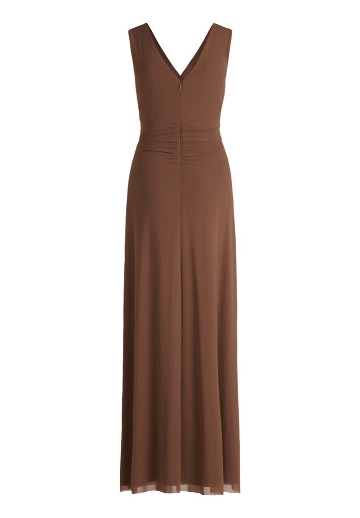 Deze elegante lange jurken combineren tijdloze klasse met een flatterende pasvorm. Het mouwloze ontwerp met V-hals en verfijnde overslagplooien aan de voorzijde accentueert het decolleté en legt de nadruk op de taille. De soepel vallende rok zorgt voor een slank en elegant silhouet, ideaal voor speciale gelegenheden.