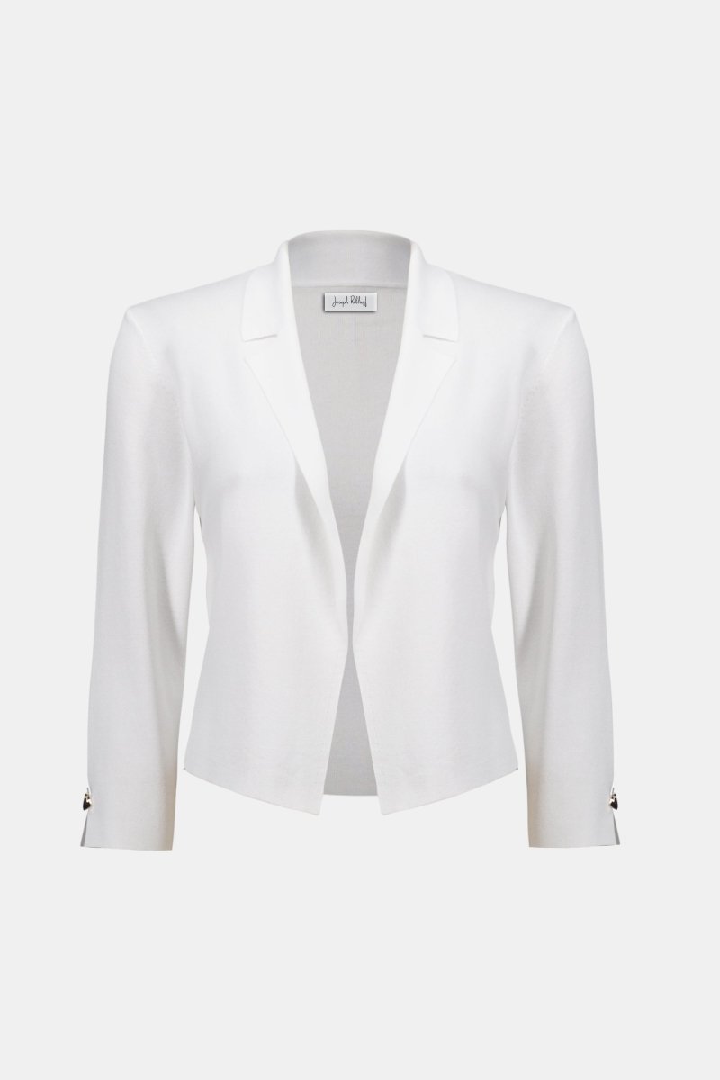 Dit elegante witte jasje is een tijdloze essential die moeiteloos verfijning uitstraalt. Gemaakt van een hoogwaardige, fijngebreide stof biedt het een perfecte combinatie van comfort, structuur en luxe. Het openvallende ontwerp met subtiele revers geeft het jasje een moderne, minimalistische look die zowel casual chic als zakelijk stijlvol kan worden gedragen.