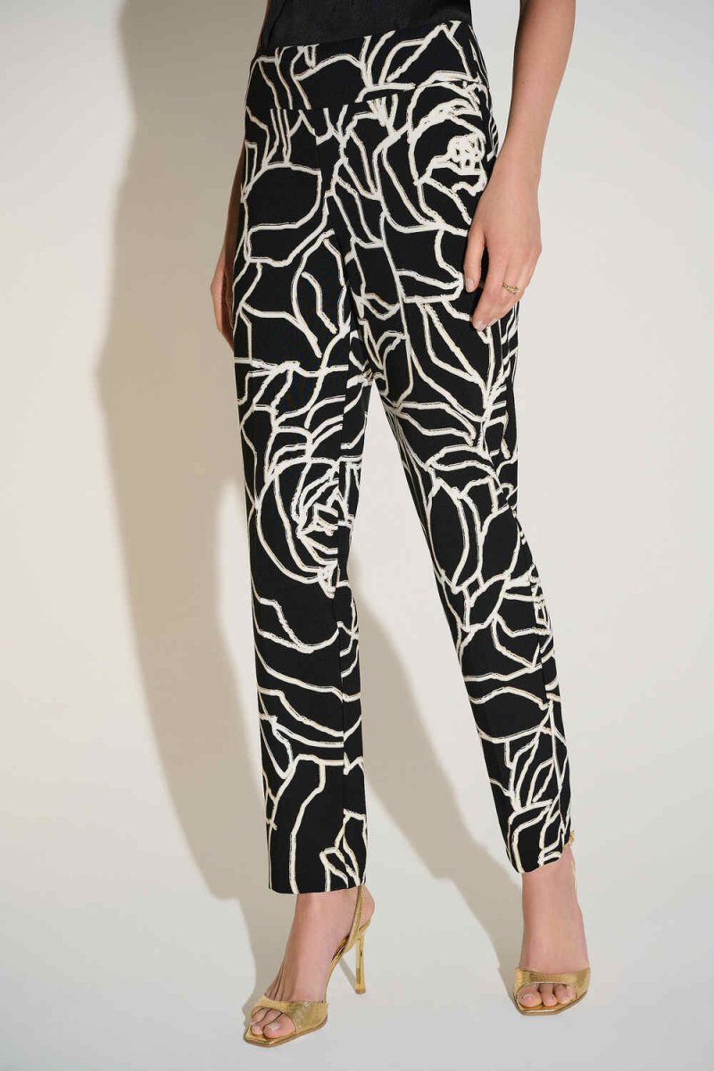 Joseph Ribkoff Signature Lux Twill Foiled Floral Pantalon – Zwart/Crème