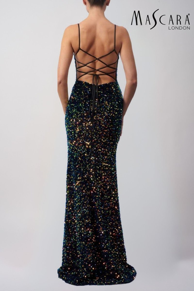 Maak een sprankelende entree met deze adembenemende paillettenjurk van Mascara London. Deze jurk is een ware eyecatcher, volledig bezet met multicolor pailletten die schitteren in elke lichtval. De kleuren wisselen subtiel bij elke beweging en creëren een glamoureus regenboogeffect dat perfect is voor feestelijke gelegenheden.