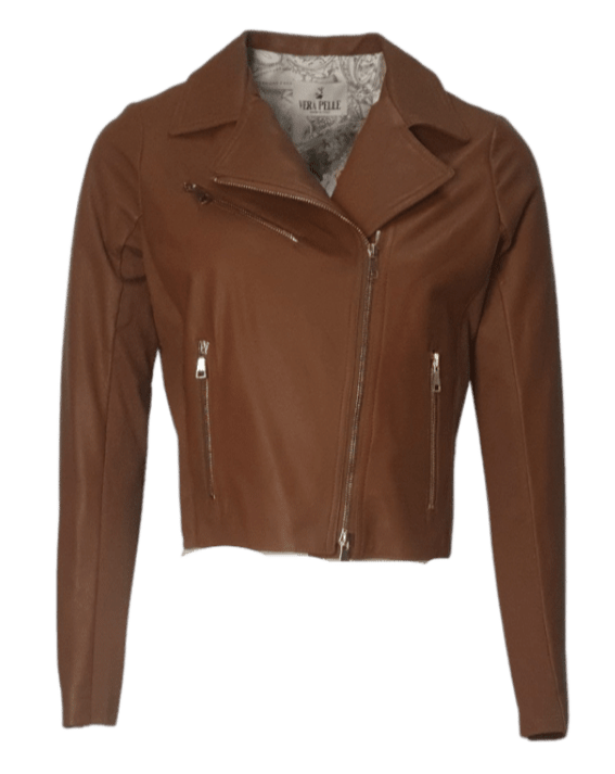 Italiaans design echt lederen jas van lamsleer. Dit soepele lederen jasje zit mooi aangesloten doordat er een jersey stretch stof verwerkt zit aan beide zijkanten.