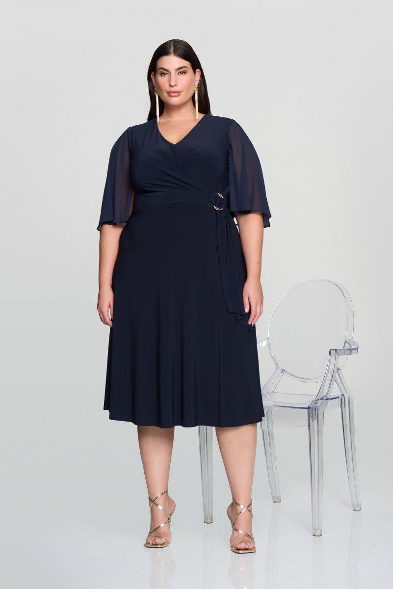 Let yourself be enchanted by glamour and charm with this dress. Simple yet sophisticated, this dress speaks for itself. The chiffon cape sleeves combined with the fit and flare silhouette are unmatched, creating a timeless look. A wide buckle and belt further adorn the waist. Part of our Signature Collection.