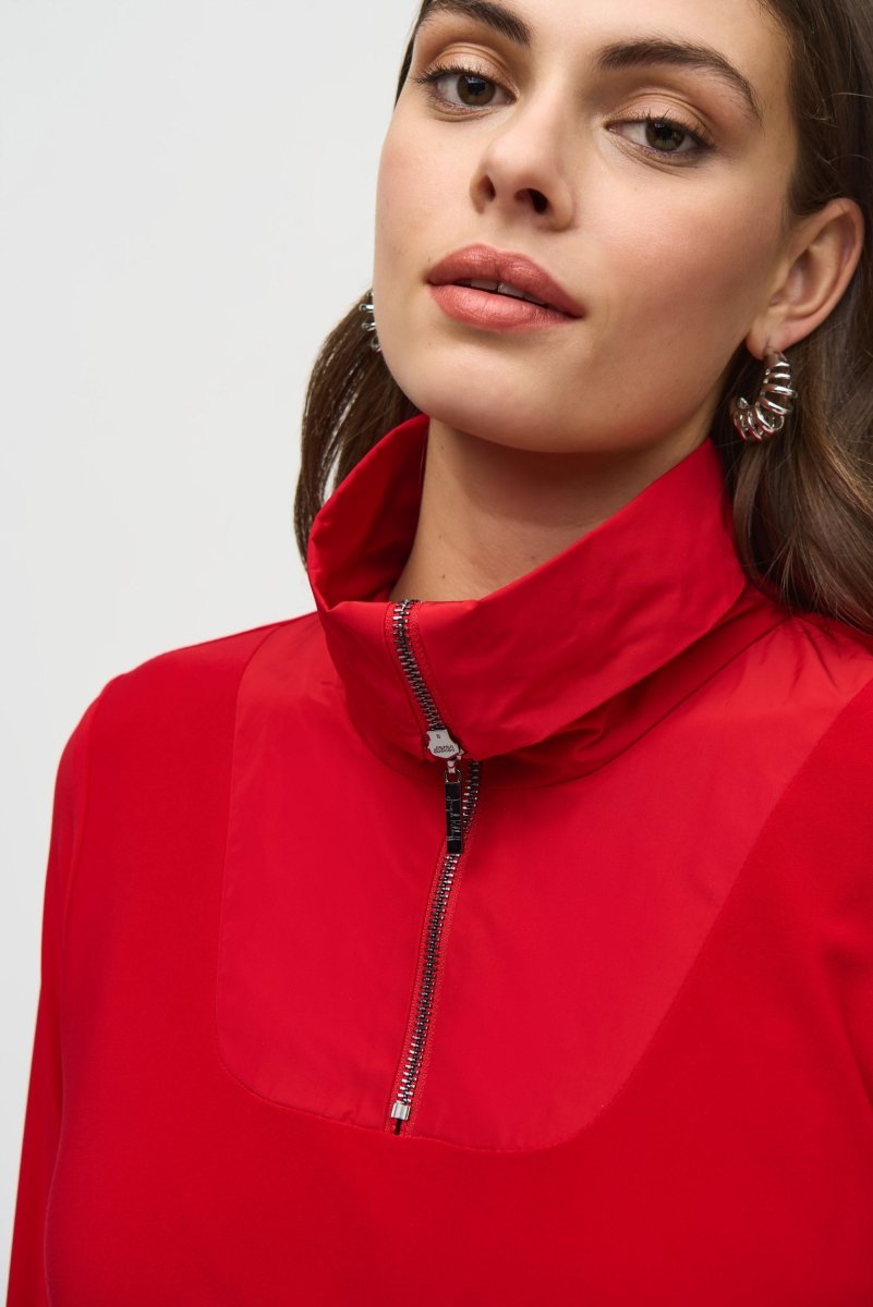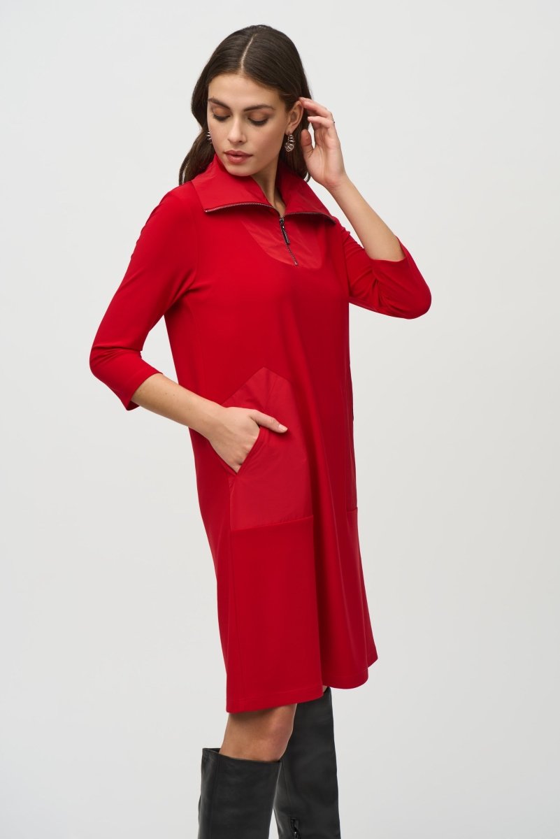 This silky knit dress exudes timeless elegance. Cut to a flattering straight silhouette, the piece features a chic stand-up collar adorned with a zip-up neckline, adding a touch of boldness to the design. The applied pockets at the front add a polished feel to this contemporary piece.