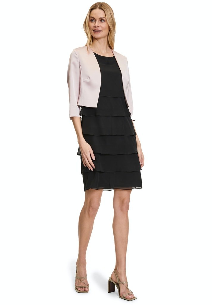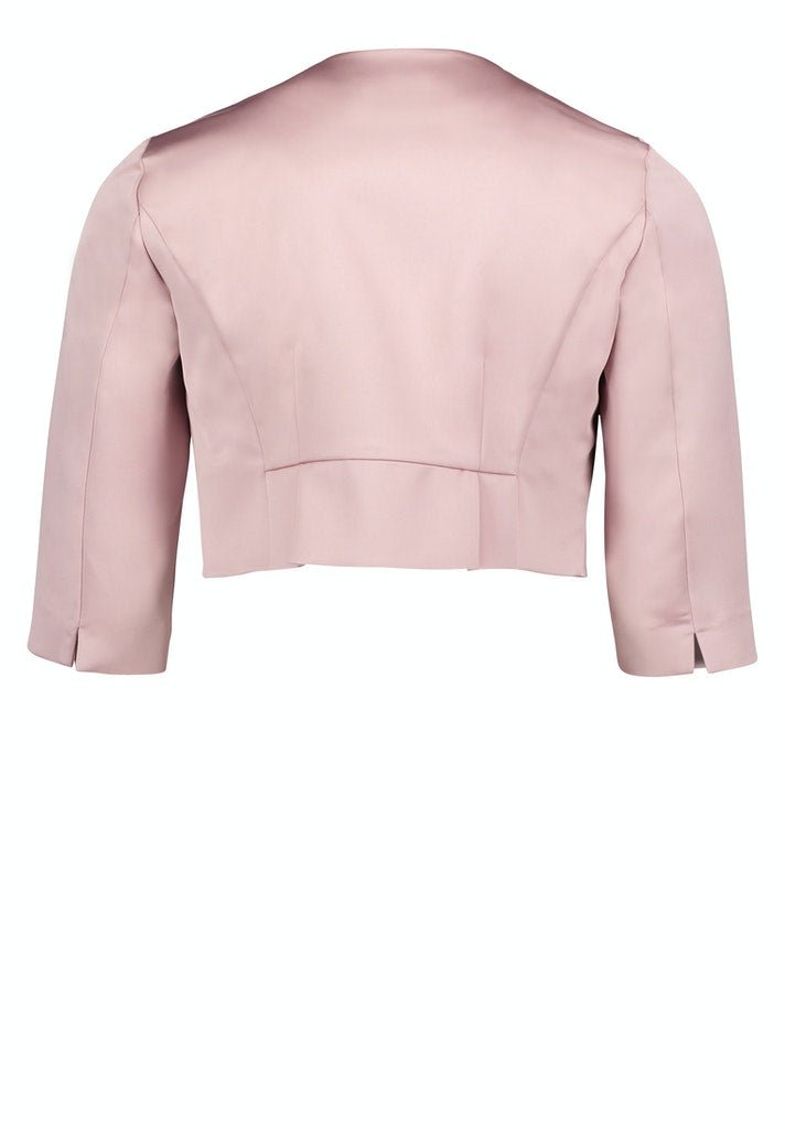 Deze satijnen bolero van Vera Mont zijn niet weg te denken uit onze collecties. Wil je je armen bedekken en gekleed voor de dag komen, dan is deze bolero het ideale kledingstuk om je outfit af te stylen. De bolero heeft een 3-4 mouw, v-halslijn, valt open tot in je taille en tailleert goed op je figuur.