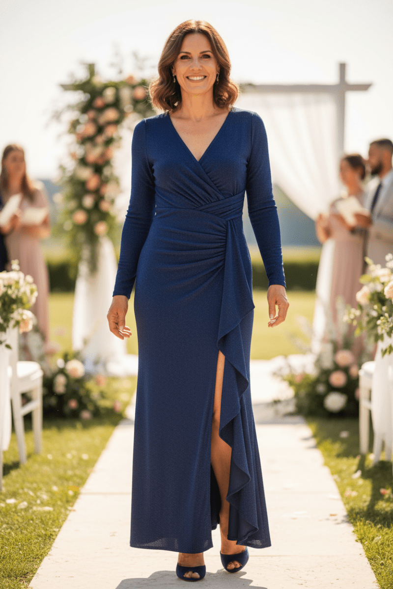 Straal tijdloze elegantie uit met deze betoverende avondjurk, ontworpen voor de vrouw die graag in het middelpunt staat tijdens bijzondere gelegenheden. Verkrijgbaar in de stijlvolle kleuren marineblauw en champagne rosé, is deze lange jurk een perfecte keuze voor gala’s, bruiloften, chique diners of feestelijke avonden.