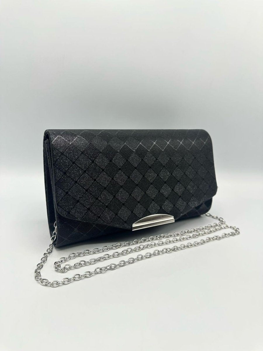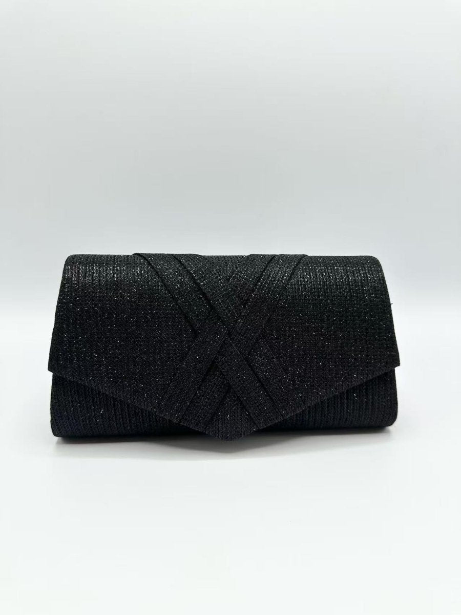 Deze clutch straalt tijdloze klasse uit met haar subtiele glitterafwerking en verfijnd geweven detail op de flap. Het compacte formaat (21 x 5 x 11 cm) maakt haar ideaal voor essentials zoals telefoon, lipstick en sleutels, zonder in te leveren op elegantie.