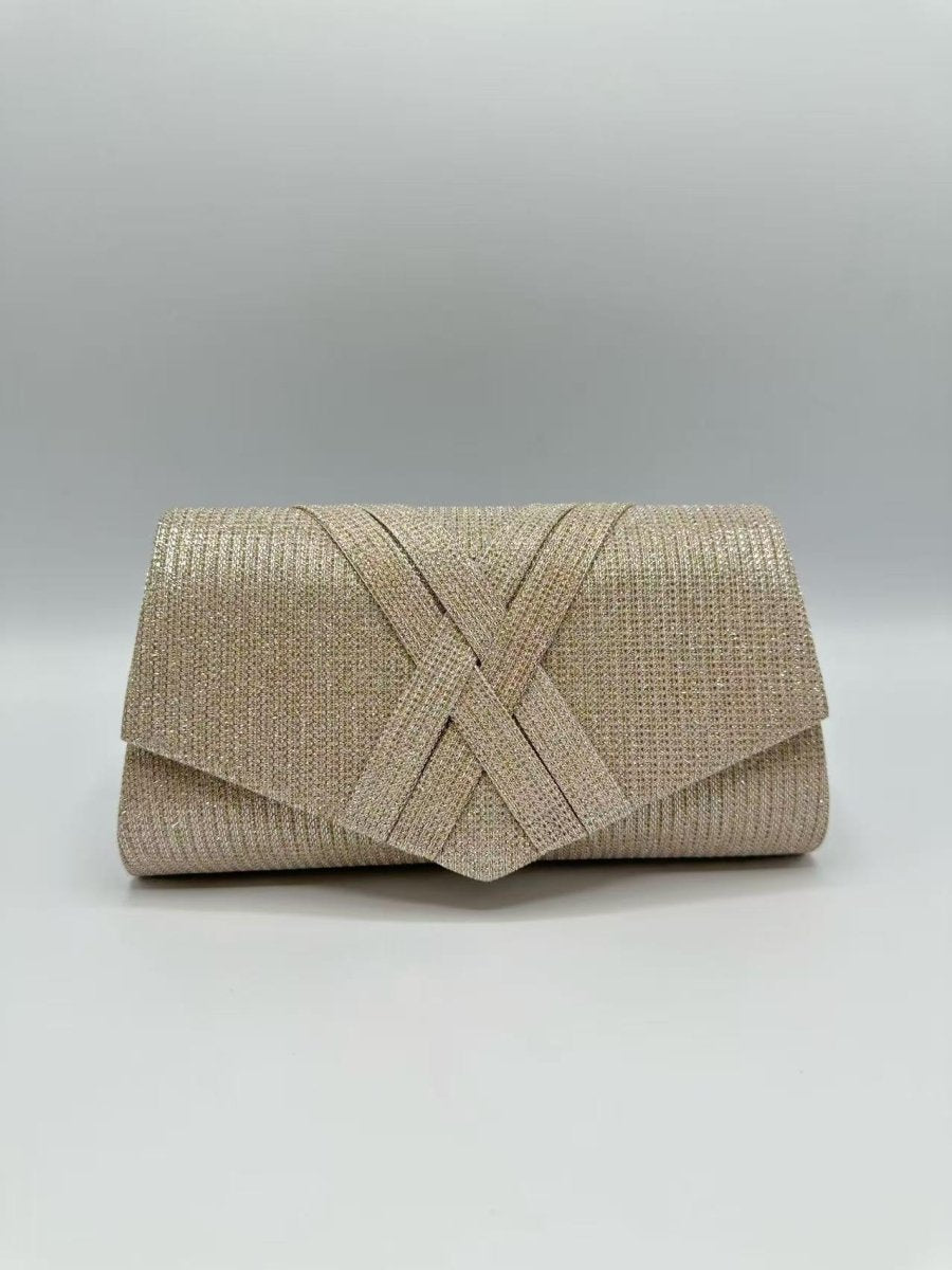 Deze clutch straalt tijdloze klasse uit met haar subtiele glitterafwerking en verfijnd geweven detail op de flap. Het compacte formaat (21 x 5 x 11 cm) maakt haar ideaal voor essentials zoals telefoon, lipstick en sleutels, zonder in te leveren op elegantie.