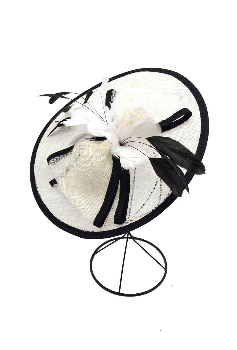 Mooie grote fascinator met zwart/witte veren. Bevestiging met clip.