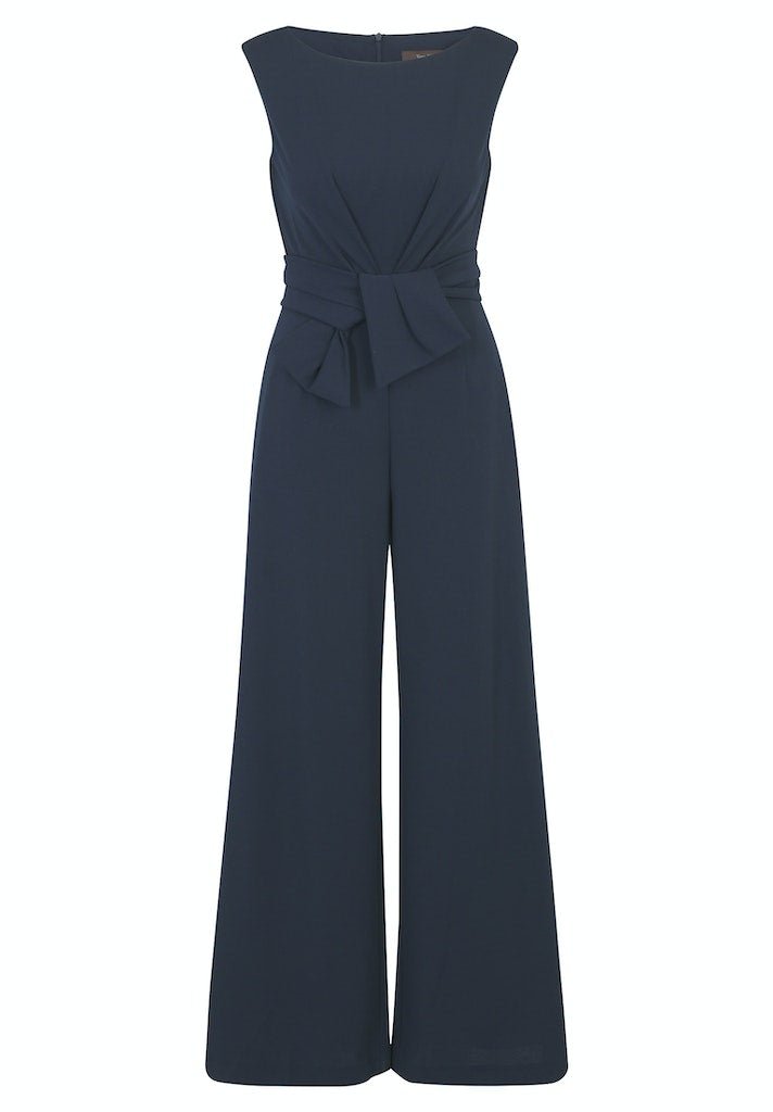 Deze WAANZINNIGE jumpsuit van Vera Mont heeft een super pasvorm. Mooi getailleerd in de taille en een palazzo model pantalon. De jumpsuit is mouwloos en heft een ronde halslijn. In de taille zit een strikdetail waardoor een eventuele buik onzichtbaar wordt!