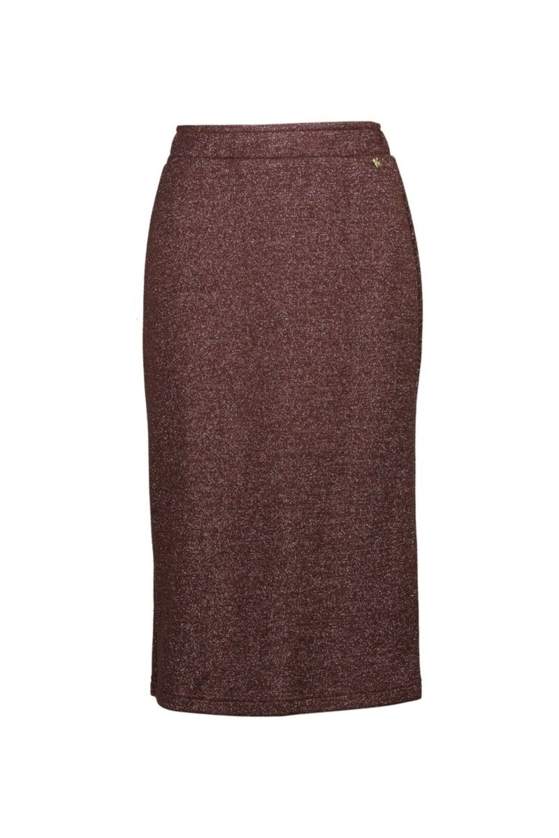De Aosta skirt van Amélie & Amélie is een elegante en veelzijdige rok die moeiteloos comfort combineert met een vleugje glamour. Uitgevoerd in een bruine glitterstof met subtiele glans, creëert deze rok een verfijnde look die perfect is voor zowel overdag als ’s avonds. De rechte pasvorm en de lichte stretchstof zorgen voor een flatterend silhouet en ultiem draagcomfort.