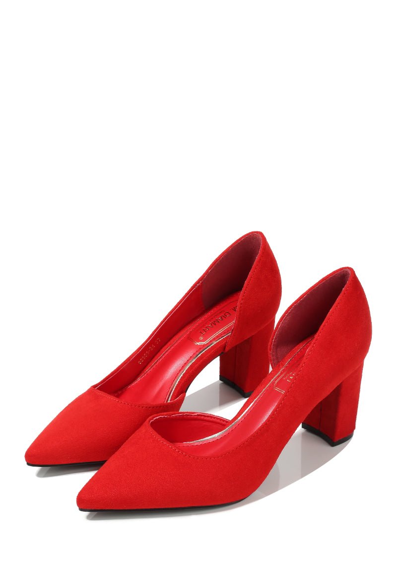 Zoek je wat meer stabiliteit dan is deze pump ideaal voor jou. Een suedine pump met open zijkant (binnenkant voet) die mooi elegant staat onder je jurk. De hakhoogte is 7cm.