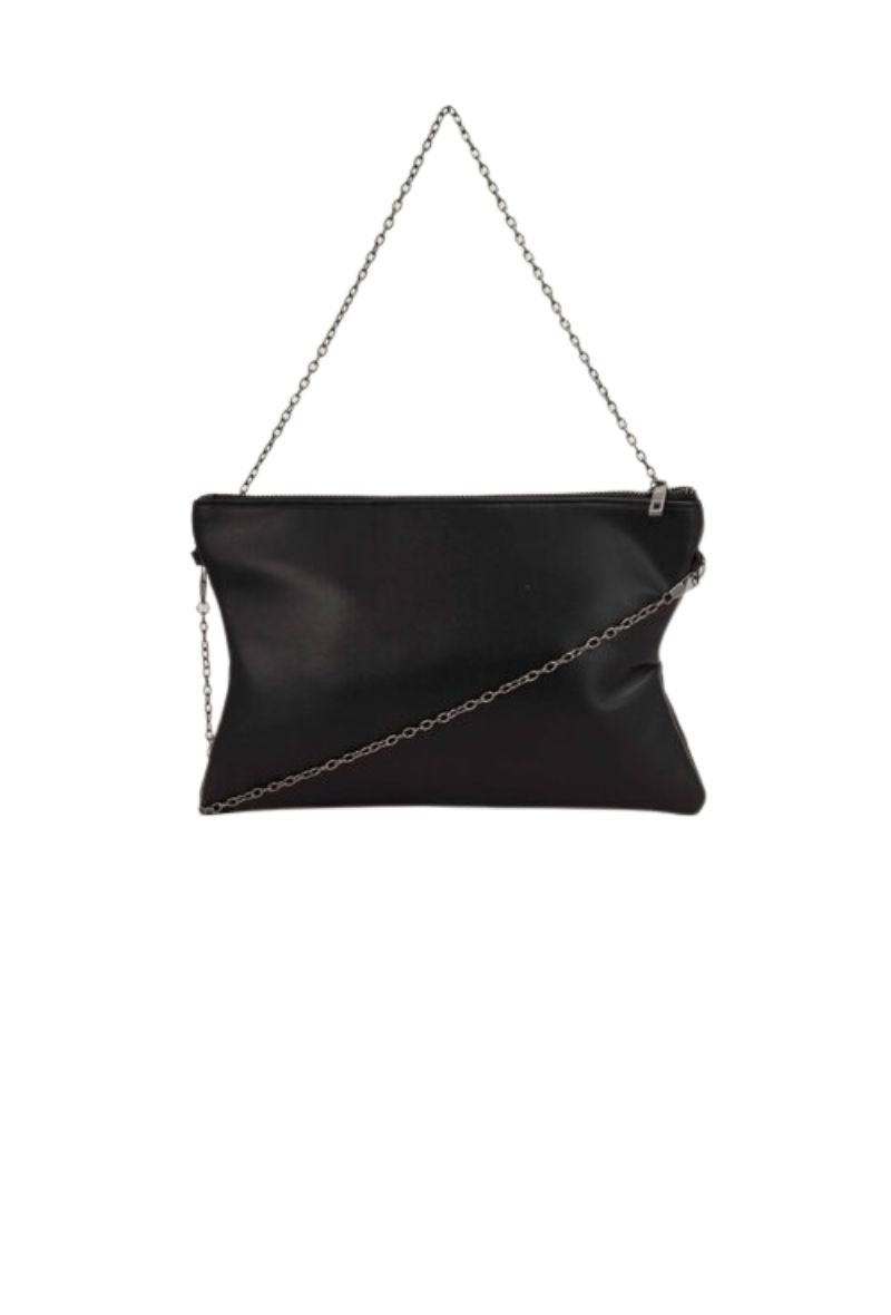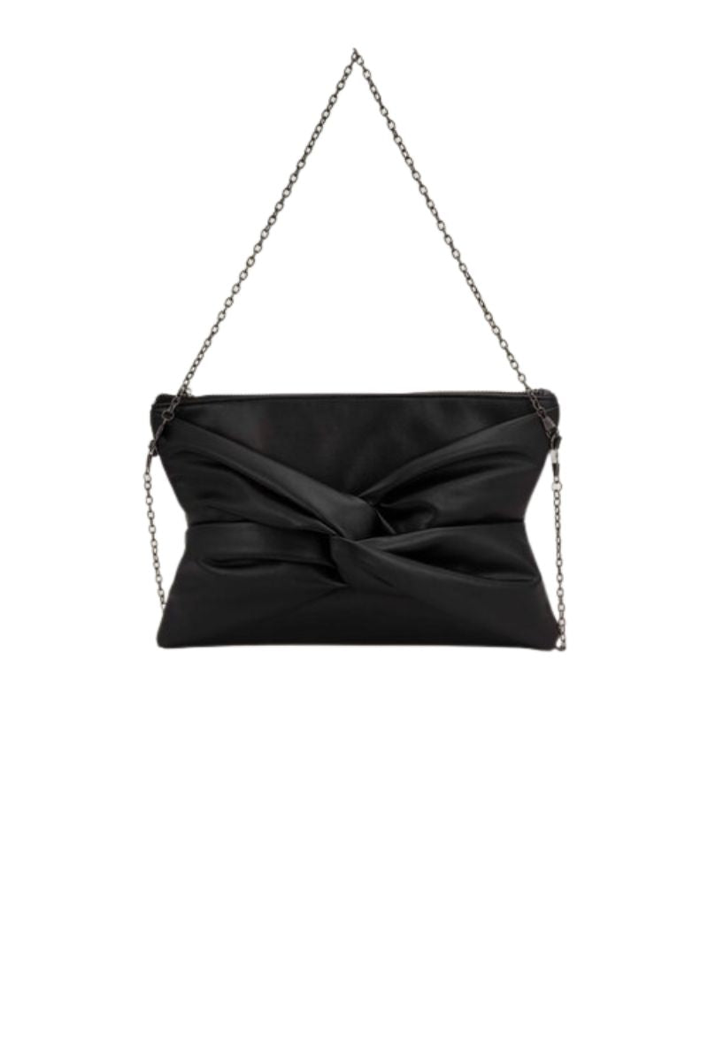 Deze opvallende Bow clutch , is een grote clutch waar veel essentials in passen voor een avondje uit. De crossbody tas heeft een niet verstelbare schouderketting. Door de bijgeleverde schouderband is deze tas gemakkelijk op diverse manieren te dragen. Aan de binnenkant heeft deze tas een hoofdcompartiment met één binnenvakje. De tas kan worden afgesloten middels een rits. De metaalkleur is een donkere, antraciete kleur. De afmetingen (breedte / hoogte / diepte) van deze tas zijn 29x19x7