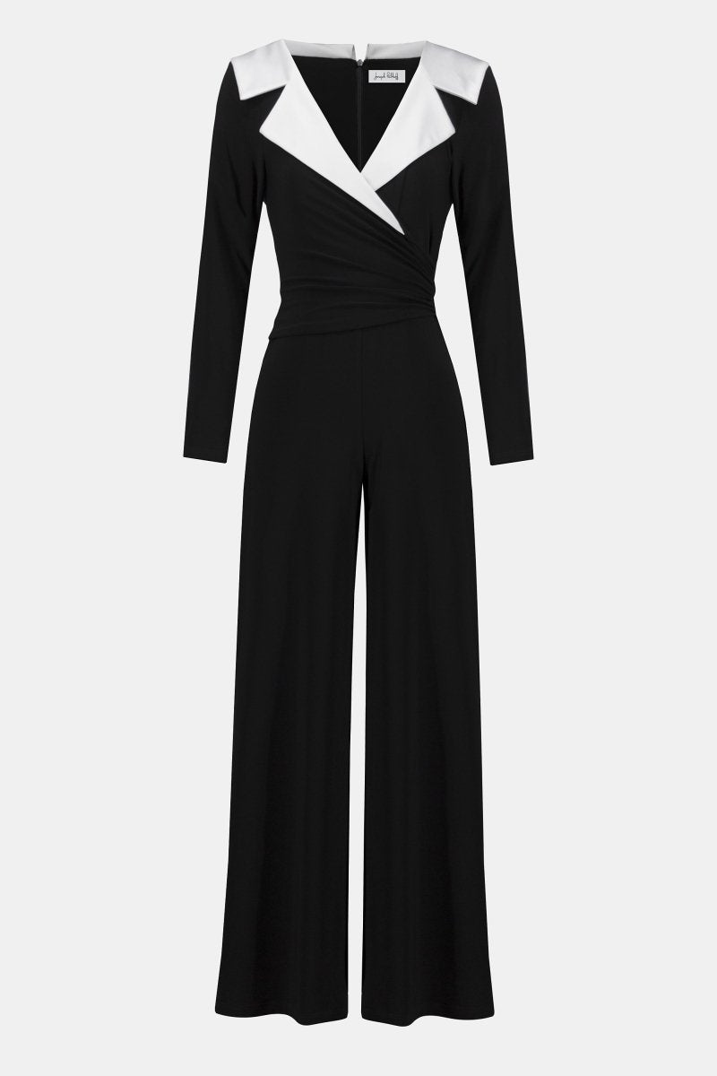 Deze stijlvolle jumpsuit is een perfecte keuze voor verschillende gelegenheden. Gemaakt van lichte, soepelvallende moss crêpe met een zijdezachte afwerking, biedt het comfort én klasse in één. De satijnen reverskraag in contrasterende kleur geeft het ontwerp een verfijnde uitstraling.