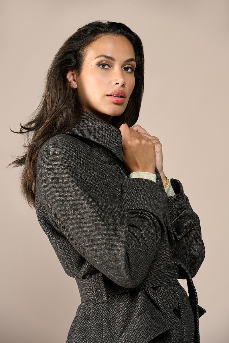 De Chloe jas van Mart Visser is een stijlvolle klassieker met een moderne twist. Deze lange, bruin gemêleerde winterjas is vervaardigd uit een rijke wolmix en heeft een tijdloos double-breasted design met een brede reverskraag en klepzakken. De rechte pasvorm kan naar wens worden getailleerd met de bijpassende ceintuur, waardoor de jas zowel elegant als comfortabel oogt.