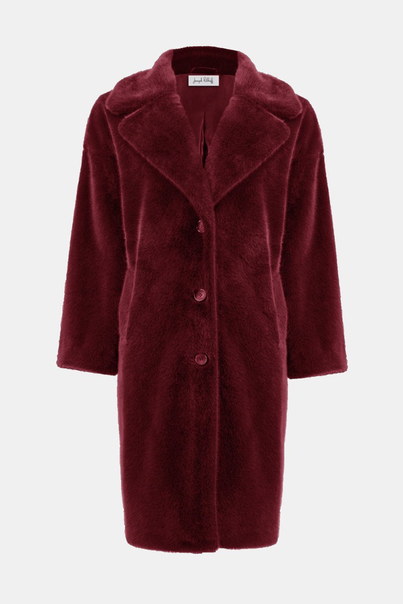 Voeg een vleugje luxe en warmte toe aan je wintergarderobe met deze prachtige faux fur jas van Joseph Ribkoff. De diepe bordeauxrode kleur straalt elegantie en stijl uit, terwijl de zachte, fluweelachtige textuur zorgt voor ultiem draagcomfort. Deze jas is de perfecte keuze voor wie een statement wil maken, zonder in te leveren op warmte of klasse.