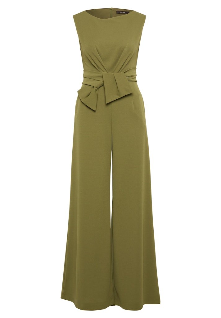 Deze WAANZINIIGE jumpsuit van Vera Mont heeft een super pasvorm. Mooi getailleerd in de taille en een palazzo model pantalon. De jumpsuit is mouwloos en heft een ronde halslijn. In de taille zit een strikdetail waardoor een eventuele buik onzichtbaar wordt!