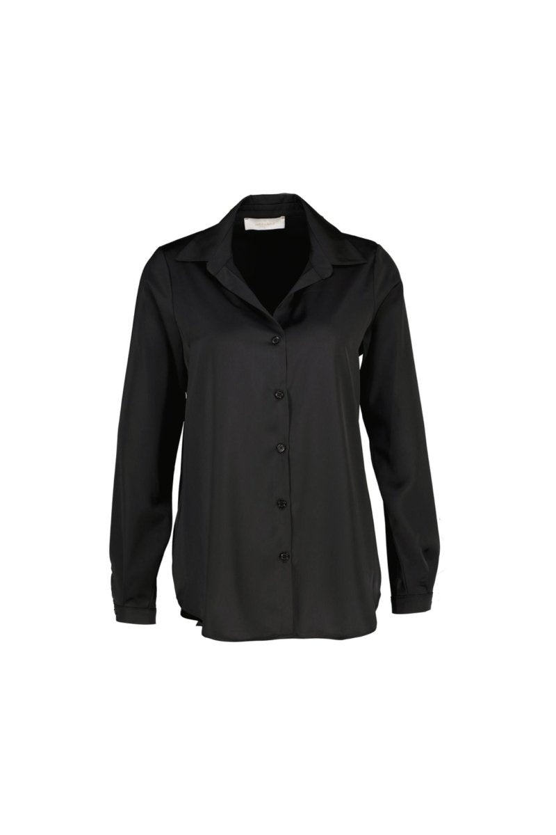 De Leonie blouse van Amélie & Amélie is een tijdloze essential die in geen garderobe mag ontbreken. Deze zwarte blouse heeft een klassiek design met kraag en knoopsluiting, en is vervaardigd uit een lichte, soepelvallende stof die comfortabel aanvoelt en elegant oogt.