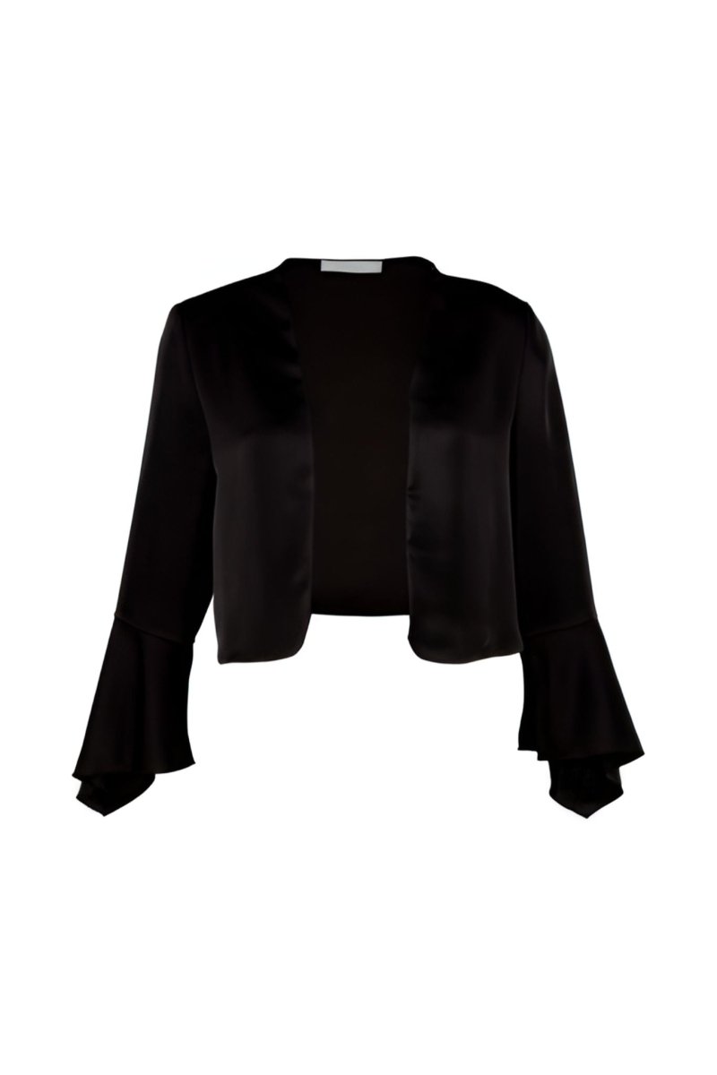 Deze elegante satijnen cropped blazer van Norfolk is een stijlvolle toevoeging aan elke feestelijke garderobe. De blazer heeft een open voorkant zonder sluiting, wat zorgt voor een vloeiend silhouet dat prachtig valt over jurken of jumpsuits. De wijd uitlopende mouwen met speelse volant geven dit ontwerp een vrouwelijke en luxueuze uitstraling.