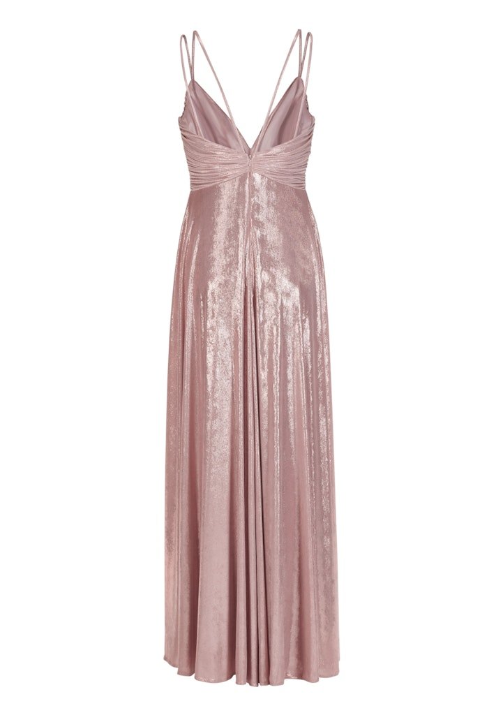 Elegant en Chic: Deze subtiel glinsterende avondjurk zorgt ervoor dat je straalt op elk feest! De stof schittert bij elke beweging en de verfijnde plooien bij het lijfje accentueren je taille, terwijl de vloeiende rok een elegante uitstraling geeft. Ons model is 176 cm lang en draagt maat 36. We raden aan een maat groter te kiezen voor de beste pasvorm. Perfect voor een onvergetelijke avond!