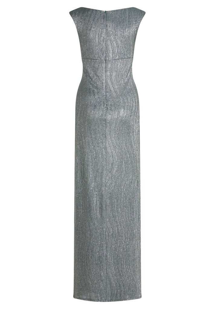 Omarm tijdloze elegantie met deze prachtige maxi jurk, ontworpen om je silhouette op zijn best te laten uitkomen. De jurk is gemaakt van een rekbare stof die moeiteloos comfort en stijl combineert. De subtiele plooien op de buik creëren een flatterend effect, terwijl de watervalhalslijn en de delicate kapmouwen een vleugje verfijning toevoegen. Verkrijgbaar in de betoverende kleuren crème met zilver of donkergroen met grijstinten, straalt deze jurk luxe en charme uit.