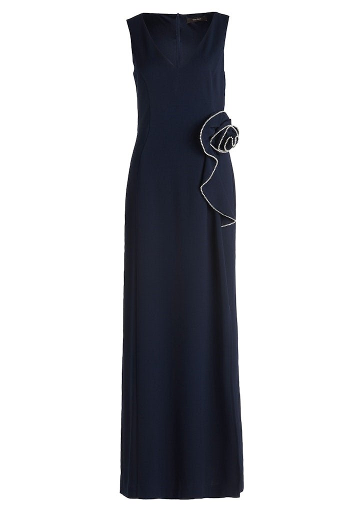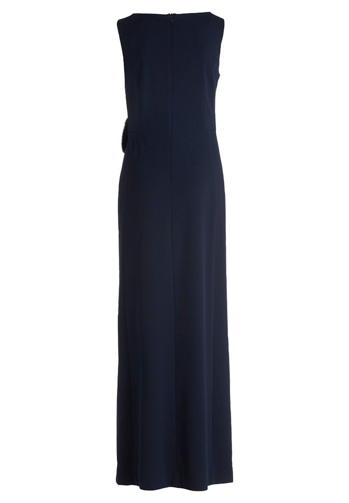 Maak een indrukwekkend entree met deze elegante marineblauwe avondjurk van Vera Mont – een verfijnde keuze voor galafeesten, bruiloften en andere formele gelegenheden.
