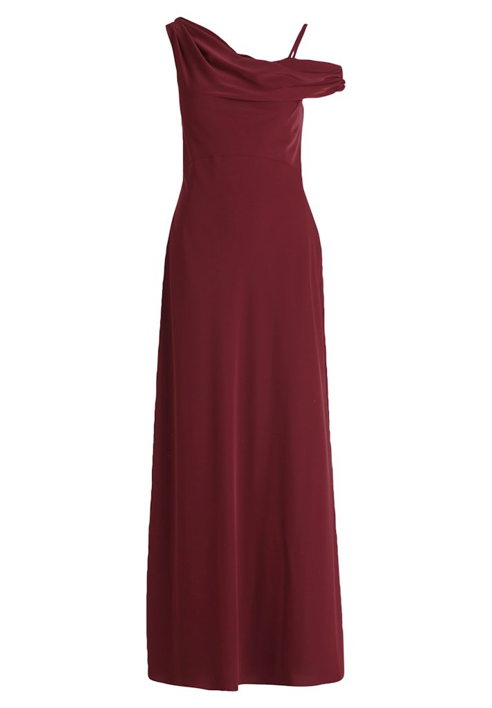 Nette avondjurk van VM by Vera Mont met een moderne asymmetrische halslijn. De jurk heeft een aangesloten pasvorm en een elegant uitlopende rok, die zorgt voor een verfijnde uitstraling. Eén schouder is voorzien van een fijne band, terwijl de andere zijde een stijlvolle drapering toont voor een unieke en vrouwelijke look. Gemaakt van een soepele stof met een subtiele glans, wat zorgt voor comfort en elegantie. Geschikt voor gala’s, bruiloften of andere feestelijke gelegenheden.