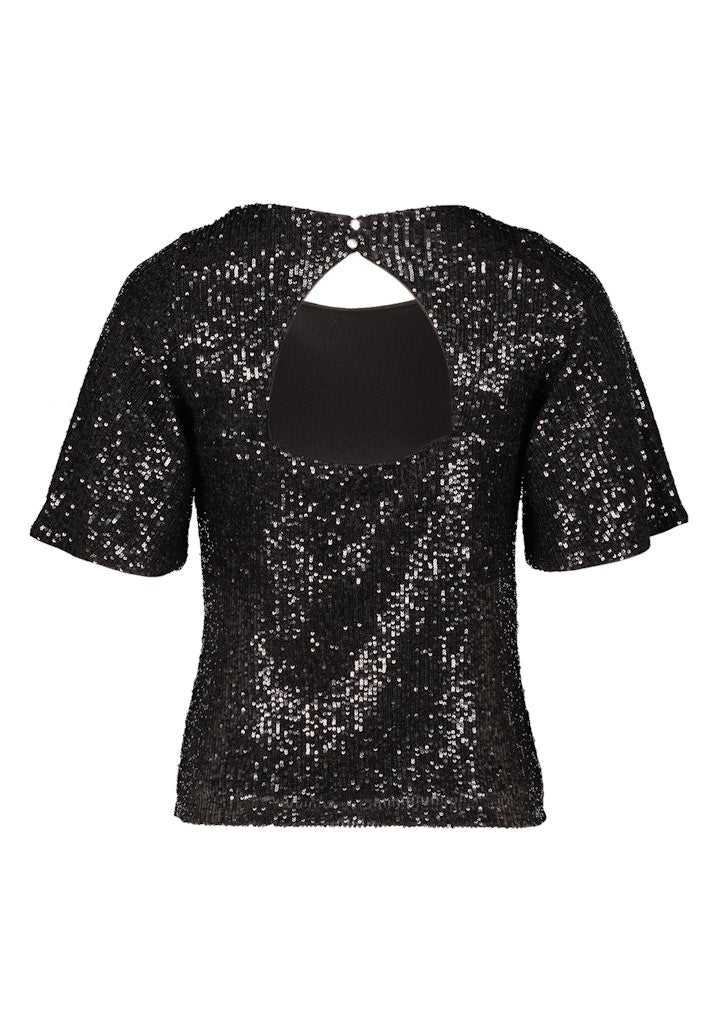 Geef je outfit een vleugje glamour met deze prachtige zwarte sequin top. De top is volledig bezet met glinsterende pailletten die bij elke beweging het licht opvangen, waardoor je meteen een feestelijke en chique uitstraling krijgt.