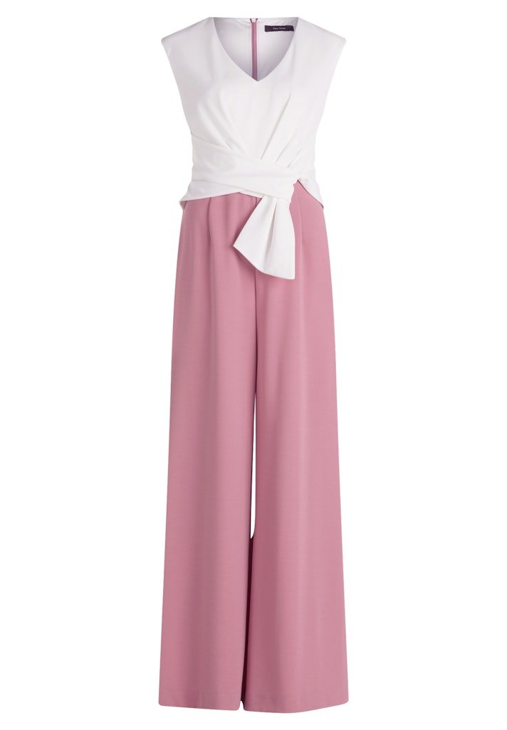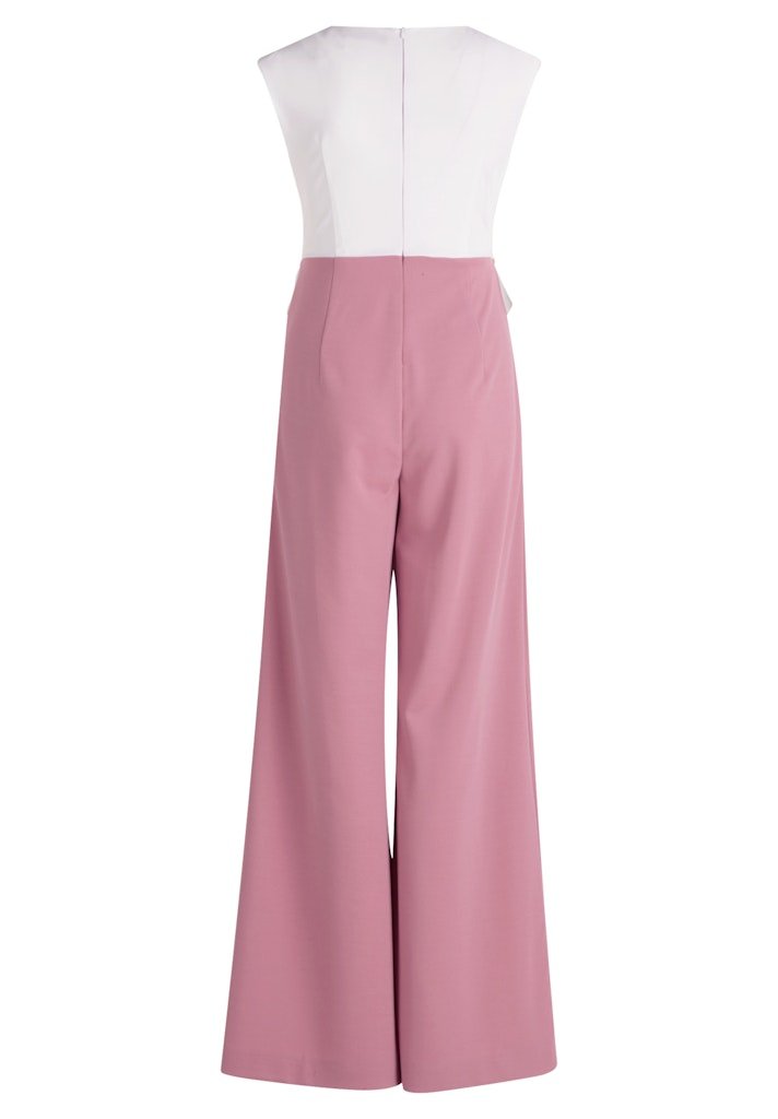 Deze stijlvolle jumpsuit is een perfecte combinatie van comfort en elegantie. Met uitlopende palazzo-pijpen creëert het een flatterend en luchtig silhouet. De V-hals en mouwloze afwerking geven een verfijnde uitstraling, ideaal voor zowel casual als chique gelegenheden. Gemaakt van hoogwaardig crêpe-materiaal, voelt de stof licht en soepel aan. De naadzakken zorgen voor extra functionaliteit, terwijl de ritssluiting aan de achterzijde een mooie, gestroomlijnde look biedt. Verkrijgbaar in de kleuren eucalyptusgroen of roze met wit – een stijlvolle keuze voor elke gelegenheid!