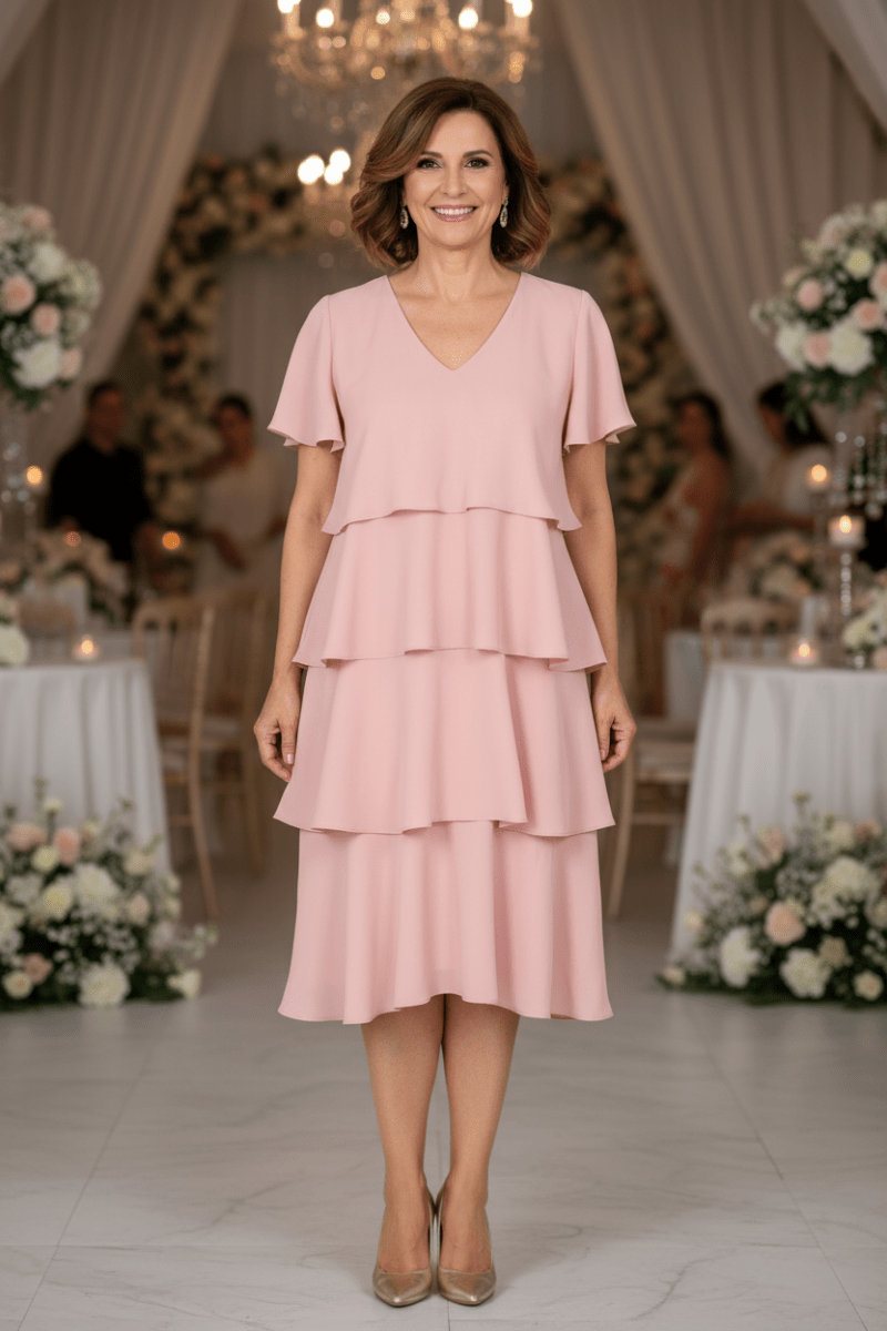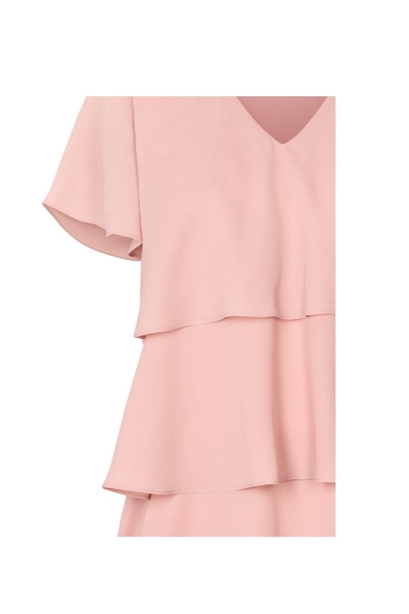 De 5027PBOAcacia jurk is een verfijnde midi jurk met een ontspannen pasvorm en een luchtige, vrouwelijke uitstraling. Het ontwerp wordt gekenmerkt door een elegante V-hals en speelse, gelaagde ruches die zorgen voor een subtiele beweging bij iedere stap. De zachte, soepel vallende stof geeft de jurk een comfortabele fit en een stijlvolle flow, perfect voor zowel overdag als in de avond.
