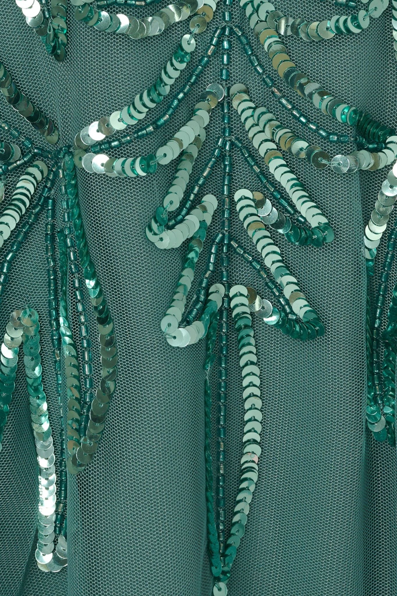 Laat je betoveren door deze schitterende avondjurk, ontworpen voor momenten waarop je echt wilt stralen. De jurk is vervaardigd uit een luxueuze, zachte mesh stof die soepel om het lichaam valt en een elegante, vloeiende A-lijn creëert.