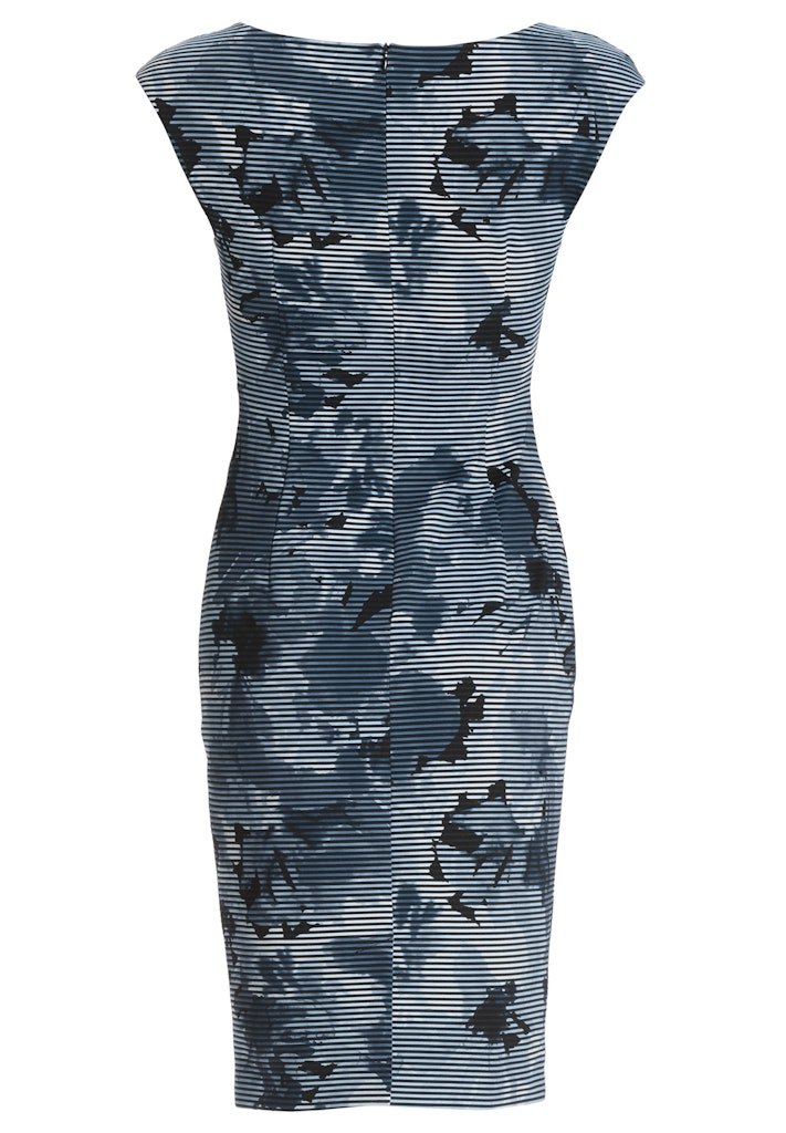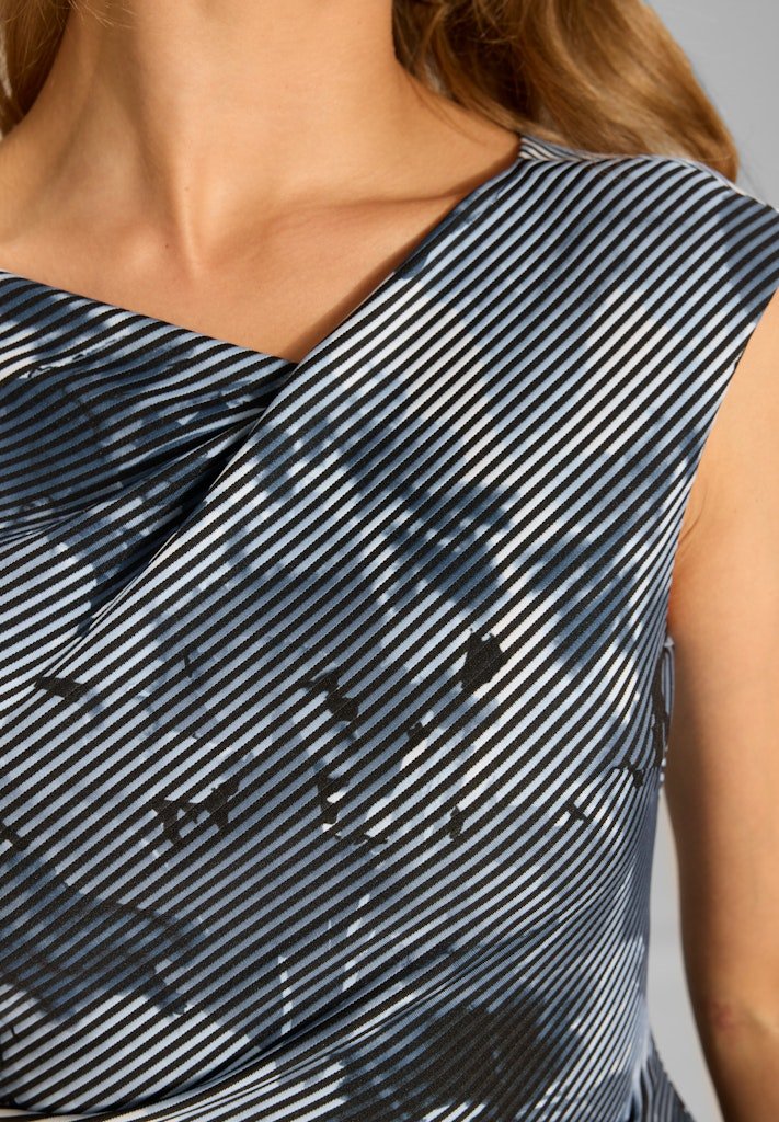 De print – een combinatie van fijne navy-witte strepen met een abstracte bloemenoverlay – zorgt voor een dynamische en stijlvolle look. De hoogwaardige stretchstof beweegt soepel mee en biedt de hele dag of avond comfort.