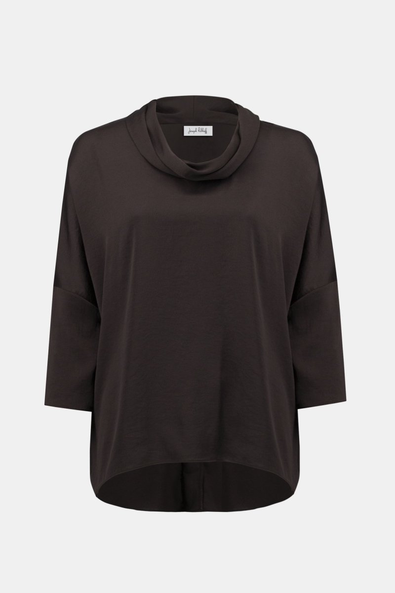 Deze stijlvolle blouse combineert moeiteloos comfort met elegantie. Het losvallende model en de driekwartmouwen geven een moderne, nonchalante uitstraling, terwijl de zachte watervalhals een vleugje verfijning toevoegt. Een bijzonder detail is de rij knopen op de rug, die de blouse een verrassend en chic accent geven.