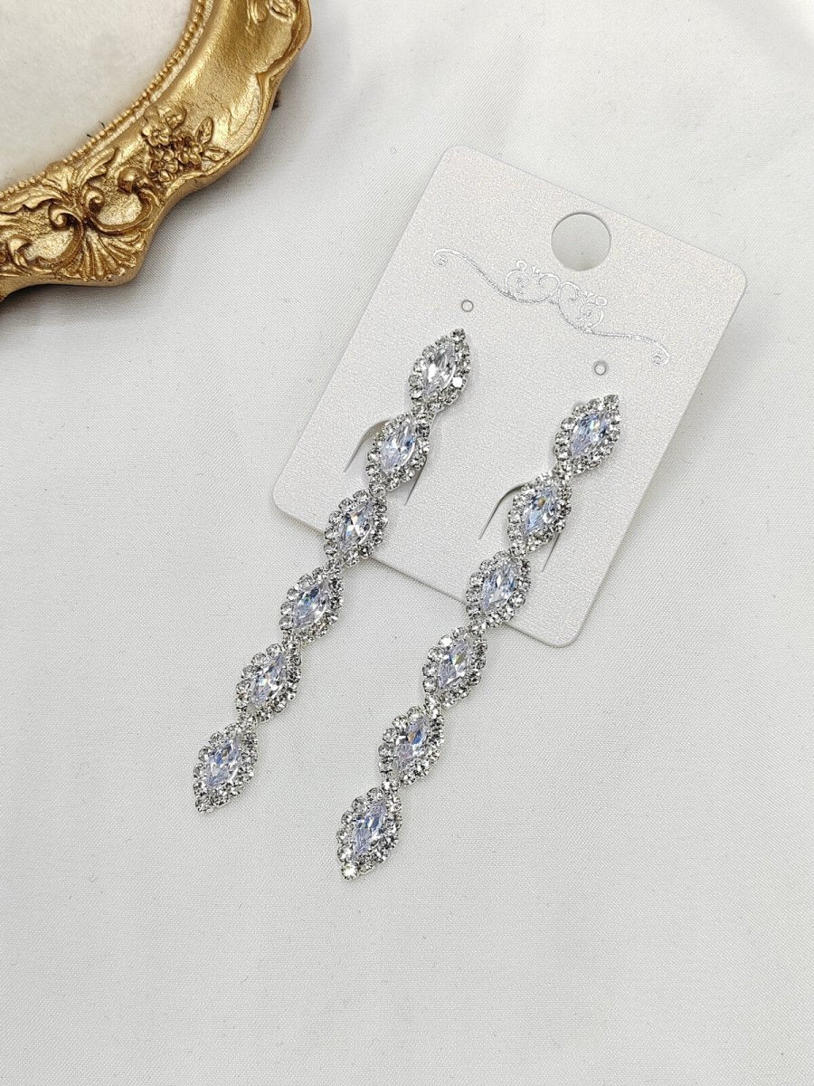 Maak een glamoureuze indruk met de Gala Strass Oorbellen, een echte eyecatcher voor feestelijke gelegenheden. Deze lange oorbellen bestaan uit een elegante reeks marquise-geslepen kristallen, omlijst door kleine fonkelende steentjes voor extra schittering. Het golvende design zorgt voor een sierlijk en luxueus effect.