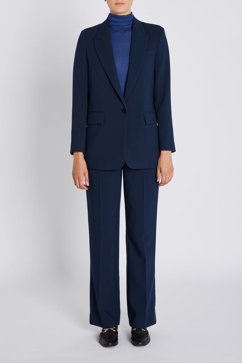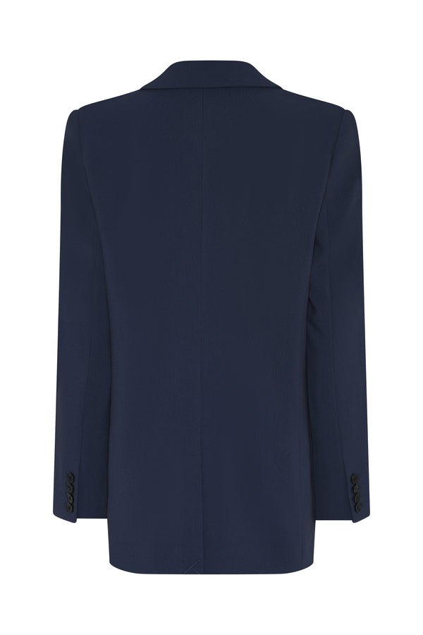 De hoogwaardige stof voelt comfortabel aan en valt soepel, waardoor de blazer zowel geschikt is voor zakelijke looks als voor chique gelegenheden. De achterzijde is strak afgewerkt met een mooie naad in het midden, wat bijdraagt aan een verzorgde en professionele uitstraling. De mouwen zijn voorzien van knoopdetails bij de manchetten voor een extra verfijnde touch.