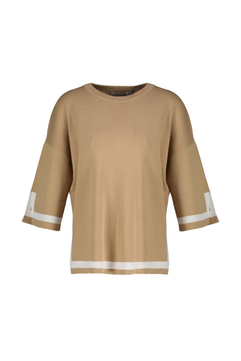 De contrasterende bies aan de mouwen en zoom voegt een subtiel grafisch accent toe en maakt deze top net even bijzonder. Perfect te combineren met een pantalon of rok voor een geklede look, maar ook ideaal voor een stijlvolle casual outfit.
