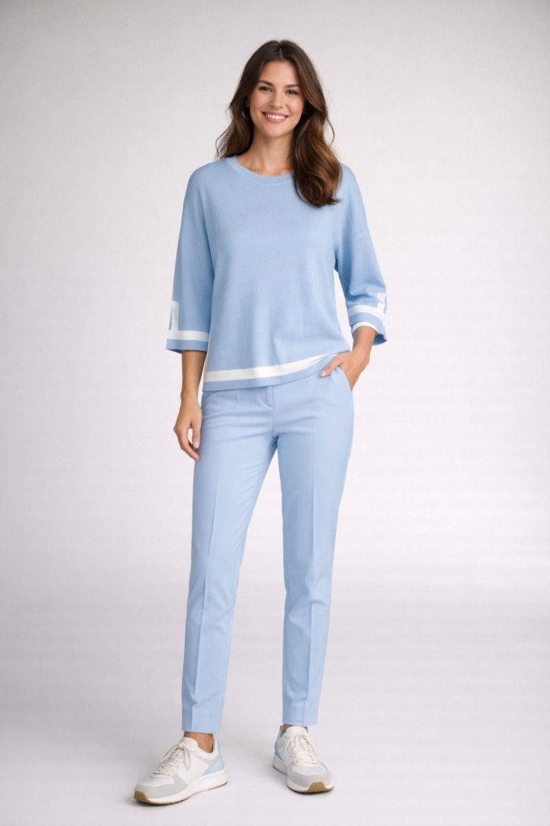 De contrasterende bies aan de mouwen en zoom voegt een subtiel grafisch accent toe en maakt deze top net even bijzonder. Perfect te combineren met een pantalon of rok voor een geklede look, maar ook ideaal voor een stijlvolle casual outfit.
