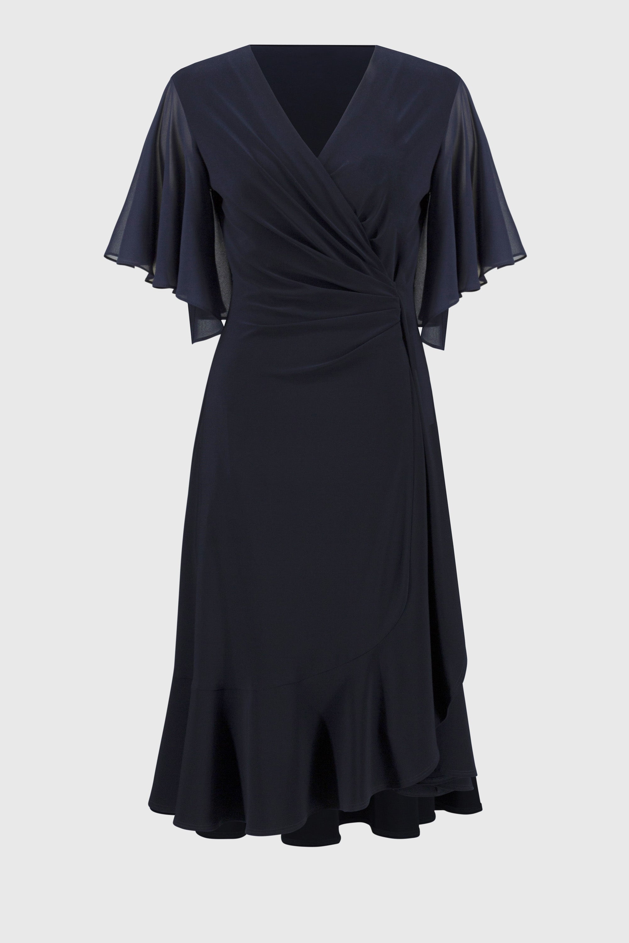 Deze Joseph Ribkoff signature jurk is een verfijnd meesterwerk, ontworpen voor bijzondere gelegenheden. Gemaakt van een luxueuze, zijdezachte gebreide stof, omhult deze jurk het lichaam met elegantie en comfort. Het wikkelontwerp van de top geeft een tijdloze charme en flatteert elk figuur. De luchtige chiffon mouwen voegen een vleugje speelsheid toe, terwijl ze de elegante uitstraling behouden. Een prachtige keuze voor diners, bruiloften of andere feestelijke momenten.