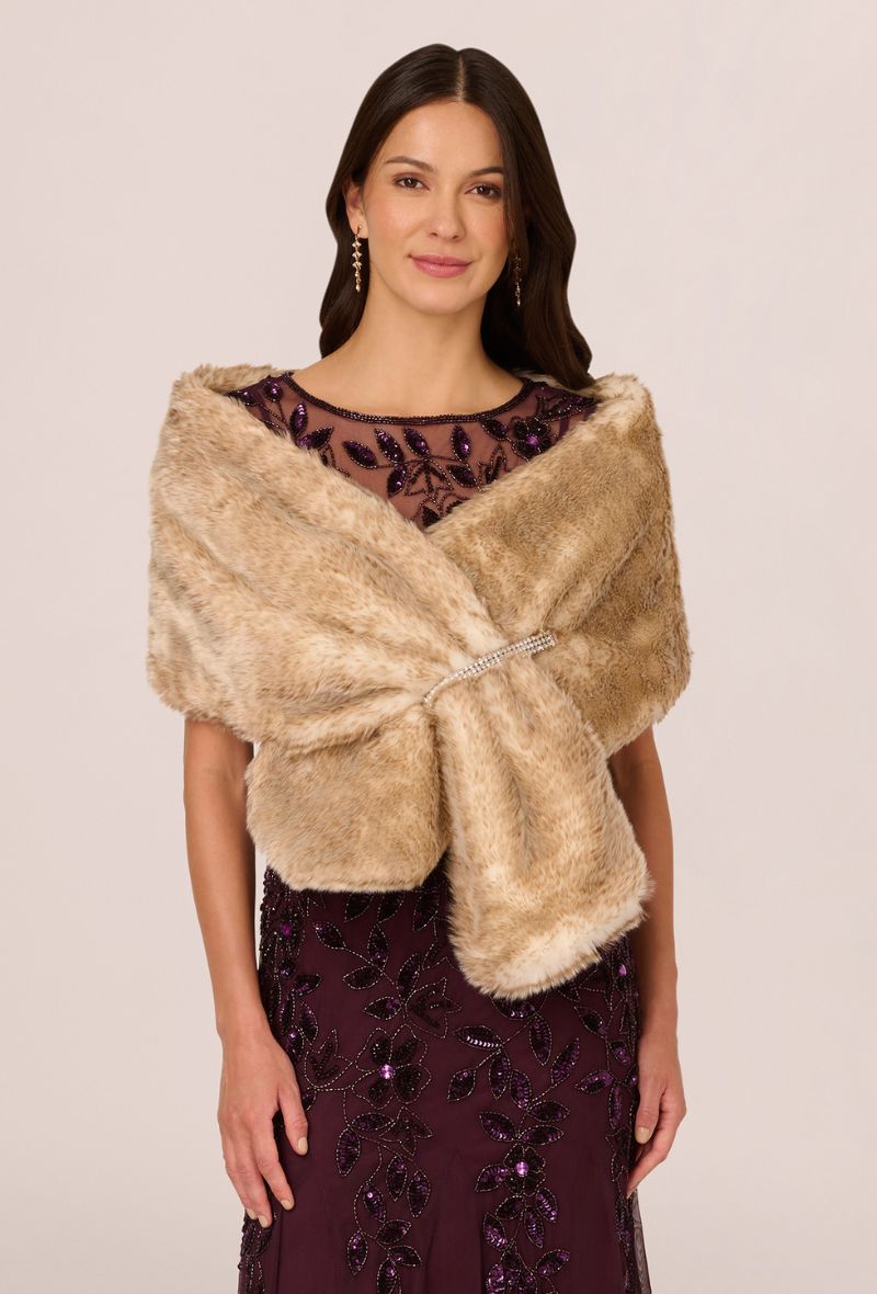 De stola is voorzien van een subtiele clip versierd met fonkelende diamantjes, die zorgt voor een mooie sluiting en extra verfijning. Een tijdloze accessoire die zowel praktisch als modieus is, ideaal voor het compleet maken van een feestelijke look.