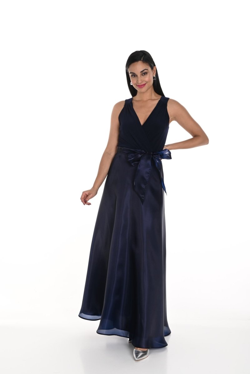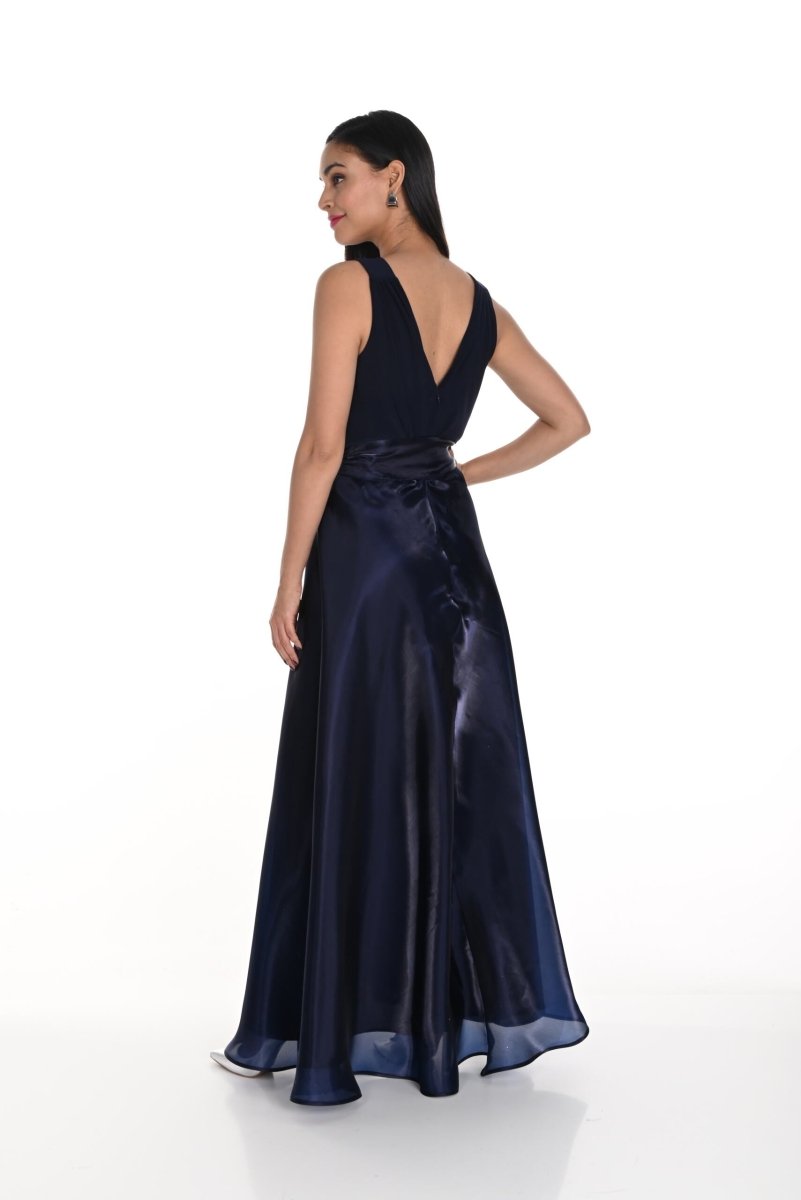 De uitlopende rok, gemaakt van luchtige organza in een elegante dubbele laag, voegt volume en beweging toe aan het ontwerp, waardoor je een sierlijke verschijning maakt. De klassieke navy kleur straalt tijdloze elegantie uit, terwijl de strik in de taille een mooi accent legt en je figuur extra benadrukt. Ideaal voor gala's, bruiloften of andere speciale gelegenheden waar je in stijl wilt verschijnen.