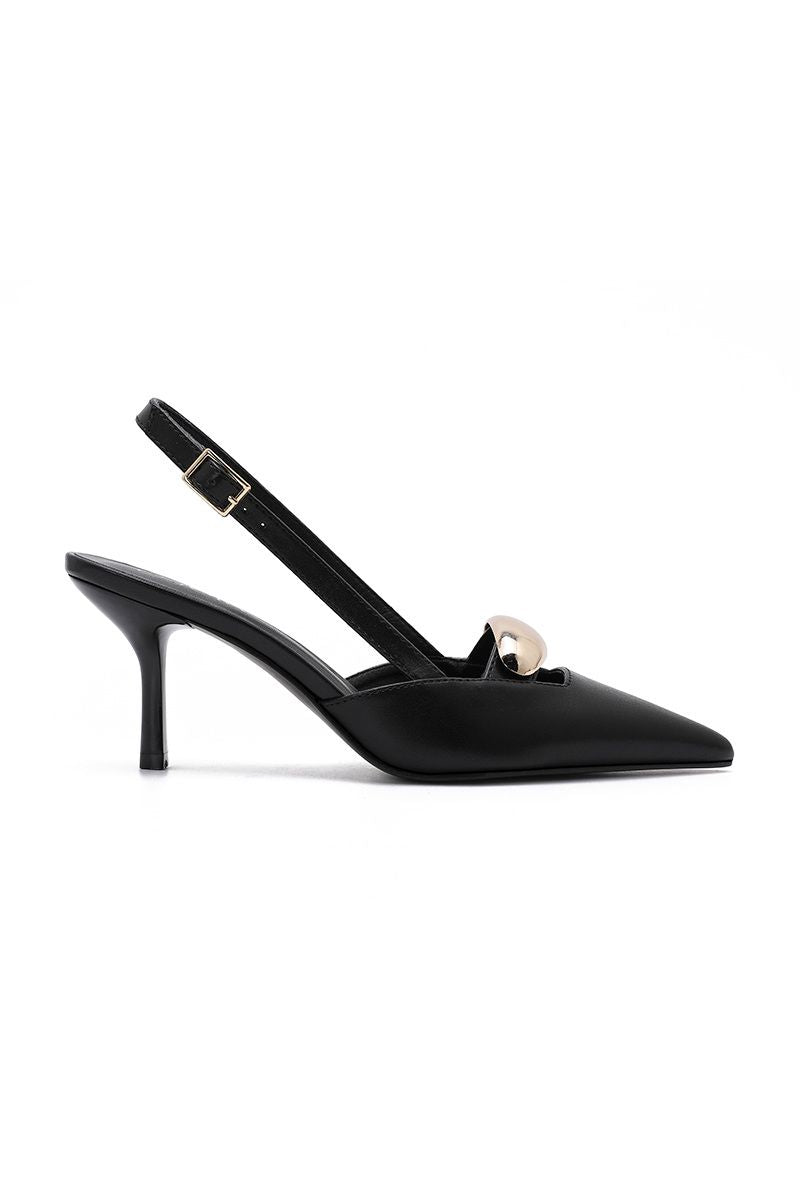 De Francisca slingback pump is een perfecte mix van elegantie en moderne glamour. Deze pumps hebben een puntige neus en een verfijnde gouden detailgesp op de wreef, wat zorgt voor een chique uitstraling.