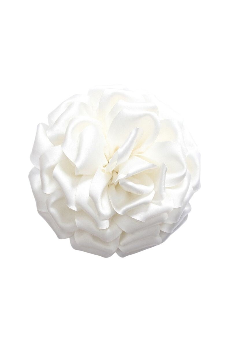 De Full Flower Corsage is een ware eyecatcher: rijk, elegant en perfect voor elke feestelijke gelegenheid. Deze grote prachtig geplooide bloem van glanzende satijnstof geeft direct een chique touch aan je outfit. Dankzij de dubbele bevestiging draag je hem veelzijdig: als broche, haaraccessoire of zelfs aan een tas of ceintuur.