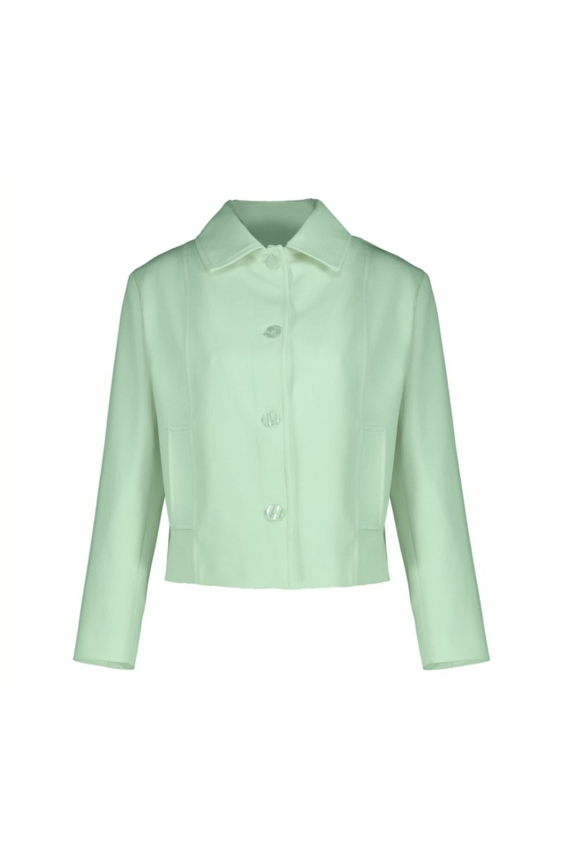 Deze elegante cropped blazer van Amélie & Amélie combineert een moderne uitstraling met een verfijnde, vrouwelijke pasvorm. Het korte model zorgt voor een eigentijdse look en maakt deze blazer perfect te combineren met een pantalon, rok of jurk. De frisse mintgroene kleur geeft het geheel een stijlvolle en moderne uitstraling.