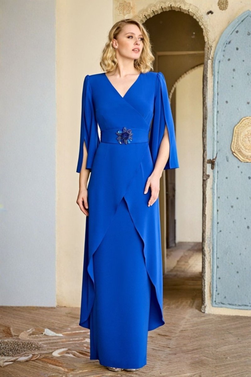 De lange rok valt recht en elegant tot op de enkels en biedt zowel comfort als een luxe uitstraling. Deze jurk is bijzonder geschikt voor moeders van de bruid of bruidegom, gala’s en andere formele events waar stijl en elegantie centraal staan.